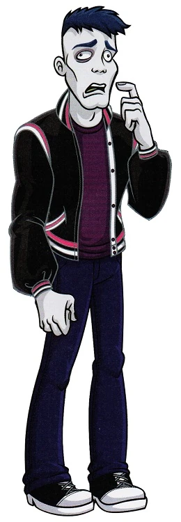 Il est généralement vu avec une veste d'uniforme monstrueuse, un jean bleu foncé, des chaussures de course noires et blanches et une chemise violet foncé. Il a les cheveux bleu foncé et la peau gris pâle. Ses yeux peuvent aussi parfois sembler flous.