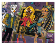 A week later, Clawdeen asks if she can visit her friends to get some work down with them, but is asked to help Clawdia, Clawd, and Howleen babysit Clawdette and the younger cousins while the adults are out for the night. She goes to find some arts and crafts stuff for them to play with, only to find them playing with her outfits for the show, accidentally ruining them.