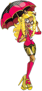 Clawdia Wolf is a 2013-introduced and all-around character. She is a werewolf and a Monster High alumni. She comes from a family with many children—among which Clawd, Clawdeen, and Howleen—and is the youngest of the ones who've already moved out. She currently lives in Londoom, Fangland, where she studies Dramatic Writing to make it as a screenwriter in Hauntlywood. She is talented, already has connections, and is even employed to write for the "Vampire Majesty" series of movies, but she's still aiming for a proper degree.