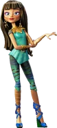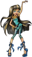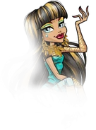 After a little over 2000 years of living a normal life, the Fright Flight occurred and Cleo's family went into hiding for a millennium or so. [Source] Although she remained living a life of luxury, Cleo missed outside contact and the ability to make friends of her own. Then news of Monster High reached the monster world, a high school that sought to bring monsters back together once more, and Cleo eagerly abandoned her home, comfortable, but a prison nonetheless, when Draculaura, Frankie Stein, and Clawdeen Wolf came to get her. Moreso, she promptly joined them in recruiting more students. [Welcome to Monster High]