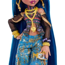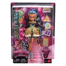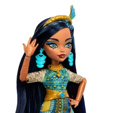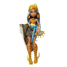 Cleo De Nile, the iconic Monster High student, is ready to rock with her unique mummified style! Dressed in a stunning shimmering gold dress and chunky sandals, Cleo shows off a look that combines classic fashion with a modern twist. With two stylish accessories to complement her look, this doll makes a fabulous gift for kids who love fashion and adventure in the scary, glamorous world of Monster High.