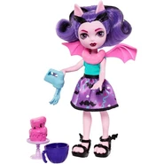 Fangelica VanBat[1] is a 2017-introduced and all-around character. She's an only-child and the youngest member of the royal VanBat Family of Transylvania. As a consequence of the Great Monster Fright Flight. Fangelica has lived alone in her ancestral castle for centuries until the Ghoul Squad brought her over to Monster High. Too young to follow classes, she spends her time with friends and her new adoptive family: her big sister Draculaura and her father Dracula. Being a little sister is a new experience, but it's having a positive effect on her social and emotional development.