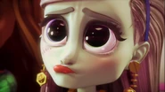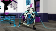 Frankie introduces herself to us: she tells us about how her family created her at the power station, and how they needed to have places to hide away from the humans. She talks about how fate brought her to the power station and how the door was locked, but then says that anyone who knows her knows she never gives up. She also talks about how the station was the perfect place for a "ghoul" (girl) brought to life by electricity. She says thankfully, there was someone who loved to read who left books behind for her, but laments she soon read all the books at the station. She then perks up about how one day, Draculaura brought her to Monster High, where she can never stop learning. The result of her experiment is revealed to be popcorn. After eating some, she states she loves science, before realizing she needs to get it upstairs for "Ghouls' Night" (girls' night). She then dashes upstairs and wishes us a good night. [Source]