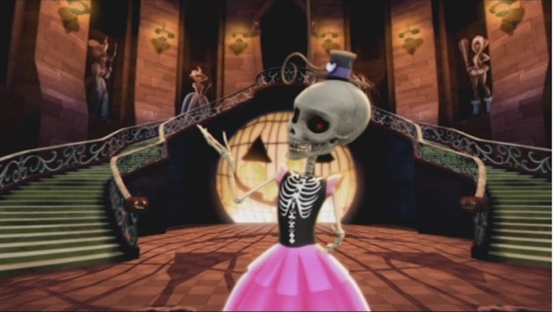 When later the Halloween party took place in the hall, the Hall of Halloween Skeleton appeared one last time to confirm things were now as they should be.