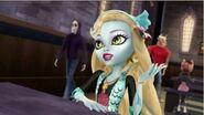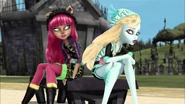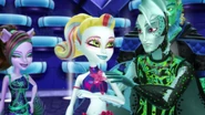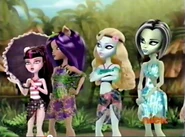 Lagoona is discussing makeup with Clawdeen and Draculaura in the hallway Frankie drops by. They skeptically ask her about the Fear Squad, which Frankie asserts is doing well. [21]