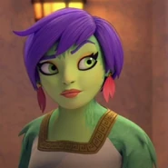 Lyra‘s appearance, being a siren, is a mixture of a woman and a bird, she has a human-like face and body, but has wings under her arms and bird-like feet. She is mostly green in color, with darker shades of green in her wings, she also has purple short hair, green eyes and light red lips.