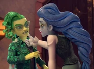 In "Spell the Beans", it's revealed that Medusa was the first gorgon to go to Monster High, and gorgons had a bad reputation at the time. It's revealed in the episode that Medusa was bullied by her classmates, who often put their feet in her way to make her fall. This implies that Medusa might be obssessed with winning because she believes winning is the only thing that will make gorgons be accepted in monster society. In “Vamps Just Wanna Have Fun”, it’s revealed that she and Draculaura’s mother, Fang Wei, often compete with one another.
