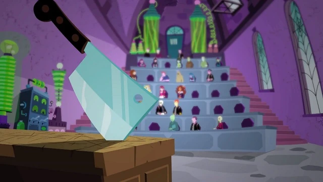 | At the Gloom and Bloom dance, The corpse flower blossoms and reveals not just a bloom, but a ghoul, Amanita Nightshade, a long-lost frenemy from Cleo de Nile's past. | ||||