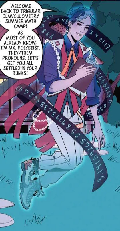 Mx. Polygeist is a 2025 introduced character, who appears in Monster High Pride 2025. They are a non-binary ghost who teaches math at the Trigular Clawculometry Math Camp Toralei and Clawdeen attend.