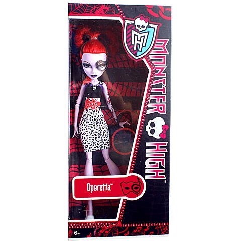 Operetta was trademarked on October 23, 2007, which was eventually abandoned and the name re-trademarked on November 17, 2011. Her first doll came out in Mid January, 2012. As of January 01, 2015, her doll number totals 13 and makes up 3.82 % of the entire Monster High doll collection. Few other merchandise of her is available.