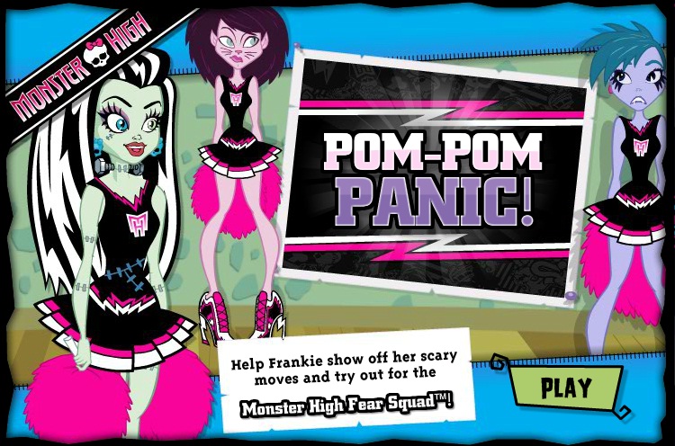 Pom-Pom Panic! is a game released on the Monster High website on October 31, 2010. It is lightly based on the cartoon entries "Fear Squad" and "New Ghoul @ School", as the gameplay revolves around Frankie Stein's efforts that earn her a spot on the Fear Squad.