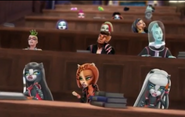 Confronted by the Fear Squad, the werecats admit to their plan to get them expelled so they can be fearleaders again, believing they can't do anything about it anymore. They are proven wrong. To add insult to injury, Ghoulia also hacks the school system, ups the werecats' math credits, and gets them forcibly sent off to the Trigular Calculometry Summer Math Camp. [Source]