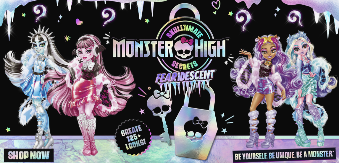 Skultimate Secrets: Fearidescent is the second addition to the Skulltimate Secrets line and features the five main ghoulfriends: Draculaura, Cleo De Nile, Clawdeen Wolf, Frankie Stein, and Lagoona Blue.