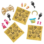 Each doll is dressed in colorful outfits, and all include a key to unlock multiple "surprises".