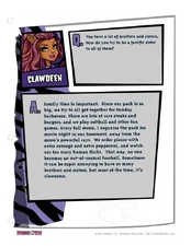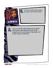 A. That's pretty easy. I'd go out for a morning run with the pack, which always keeps me on my claws. Then I might meet Deuce for a burger and a little casketball. I'd spend the afternoon catching up on my reading and maybe take my pet gargoyle bulldog Rockseena for a walk. And, of course, Saturday night is reserved for Draculaura. I'd take my ghoul out for some dinner. Maybe Italian, but only if there isn't too much garlic. Then we might see a movie or go for a romantic moonlight stroll. That sounds like a pretty clawsome day!