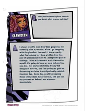 A. I always want to look drop-dead gorgeous, so I carefully plan my outfits. When I go shopping with the ghouls at the maul, I know exactly what I'm looking for--from a killer dress to a pair of ghoulicious shoes to a creeperific pair of earrings. I also make some of my killer outfits myself. I'm going to have my own fashion line one day. I've started sketching freaky-fab designs of my own, and I'm getting so good on the sewing machine, I could probably outstitch Frankie's dad. Some day, you'll be wearing House of Clawdeen haunt couture, and you can say you met me before I was a famous monsterista.