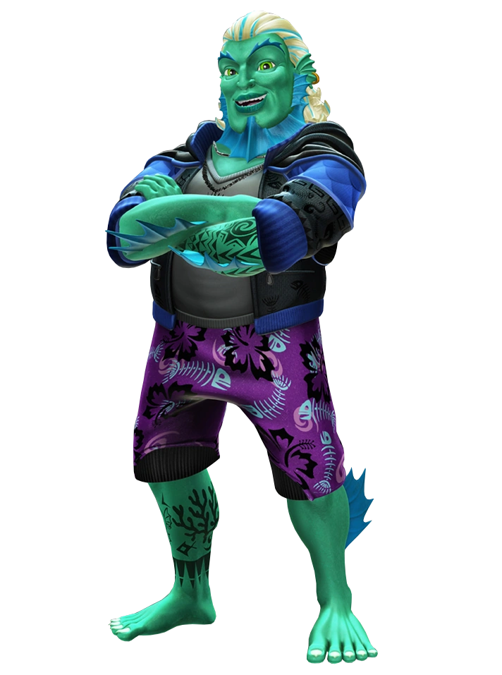Much like his daughter, Wade is a very laid-back monster who likes to take things easy and go with the flow. However, he is fiercely supportive of Lagoona and her siblings and is always eager to support her in her endeavors.