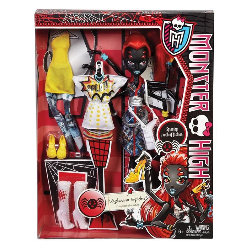 Wydowna Spider was trademarked on June 25, 2012 and her first doll came out on July 17, 2013. As of January 01, 2015, her doll number totals 2 and makes up 0.59% of the entire Monster High doll collection. Other merchandise of her is not yet available.