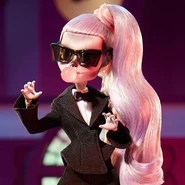 Zomby Gaga is a 2016-introduced character and is all-around character. She is based off of Lady Gaga and her revolution of monster pride, especially since she calls her fans "Little Monsters". She is a collaboration created with the Born This Way Foundation. She is the Monster High identity of Lady Gaga.